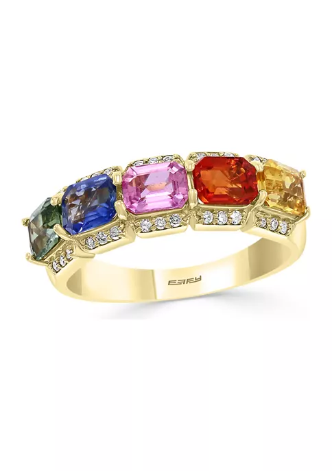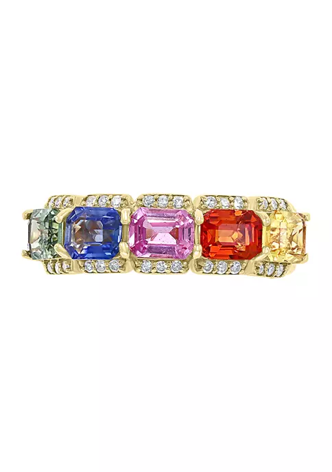 - 1/6 ct. t.w. Diamond, 2.44 ct. t.w. Sapphire, Green Sapphire, Pink Sapphire, Yellow Sapphire, Orange Sapphire