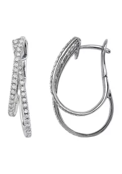 Best Pirce 🤩 1/2 ct. t.w. Baguette and Round Diamond Hoop Earrings in 14k White Gold by Effy® 🔥