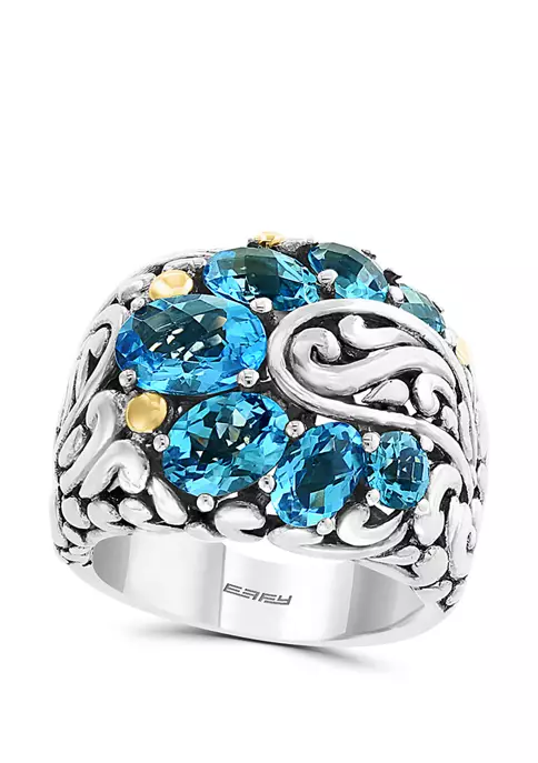 New ⌛ 4.65 ct. t.w. London Blue Topaz Ring in Sterling Silver and 14K Yellow Gold by Effy® 👍