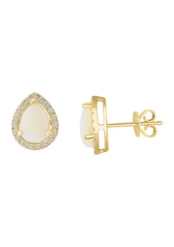 Cheapest 🌟 1/5 ct. t.w. Diamond and 1.25 ct. t.w. Opal Earrings in 14K Yellow Gold by Effy® 😀