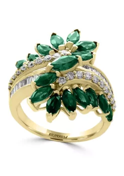 New 👍 1/2 ct. t.w. Diamond and 2.47 ct. t.w. Natural Emerald Ring in 14K Yellow Gold by Effy® ❤️
