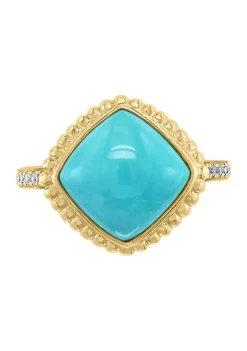 Promo 🎉 1/10 ct. t.w. Diamond and 4.41 ct. t.w. Turquoise Ring in 14K Yellow Gold by Effy® 🛒