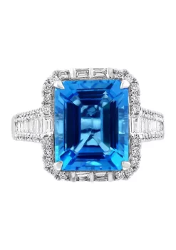 Promo 👏 3/4 ct. t.w. Diamond and 7.13 ct. t.w. Blue Topaz Ring in 14K White Gold by Effy® 🤩